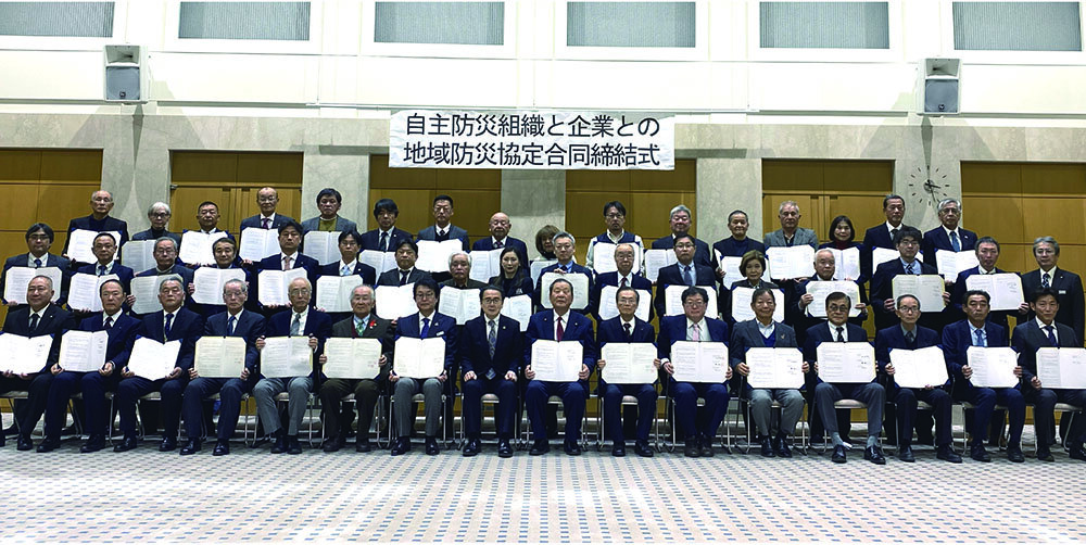自主防災組織と企業との地域防災協定合同締結式の様子
