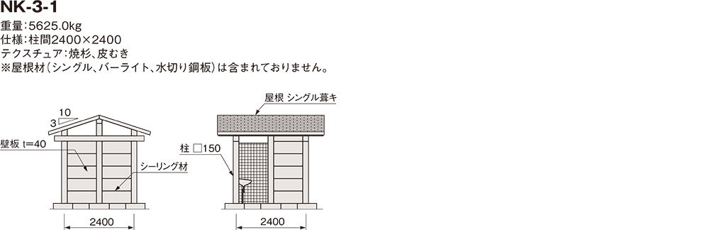 屋根材(シングル、バーライト、水切り鋼板)は別途